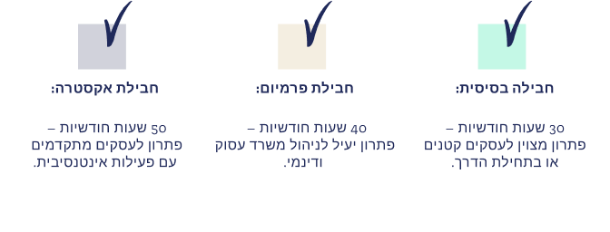 קודם כל, חיסכון בזמן – המיקוד שלכם נשאר בליבת העסק במקום בניהול משימות ניהול בשוטף. בנוסף, צוות מקצועי ומיומן מנהל את המשימות ביעילות ואפשר לכם להתקדם הלאה בגמישות תפעולית – כאשר תוכלו תמיד להתאים את חבילת שעות השירות לפי הצורך שלכם.